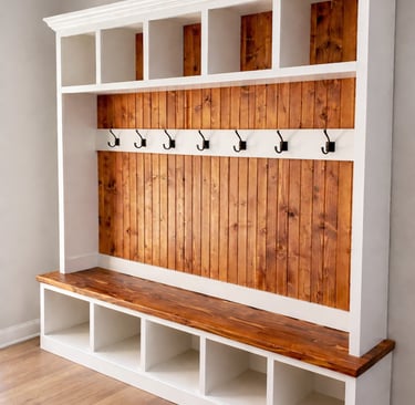 Hall trees are a functional and stylish way to organize your entryway, and at Boards to Heirlooms, each hall tree is custom-built to fit your space and lifestyle. We design hall trees with a balance of storage and design, incorporating benches, cubbies, hooks, and cabinets to keep everyday items organized while creating a welcoming first impression. Every piece is thoughtfully crafted to complement your home’s layout and aesthetic, whether your style is clean and modern or more timeless and traditional.