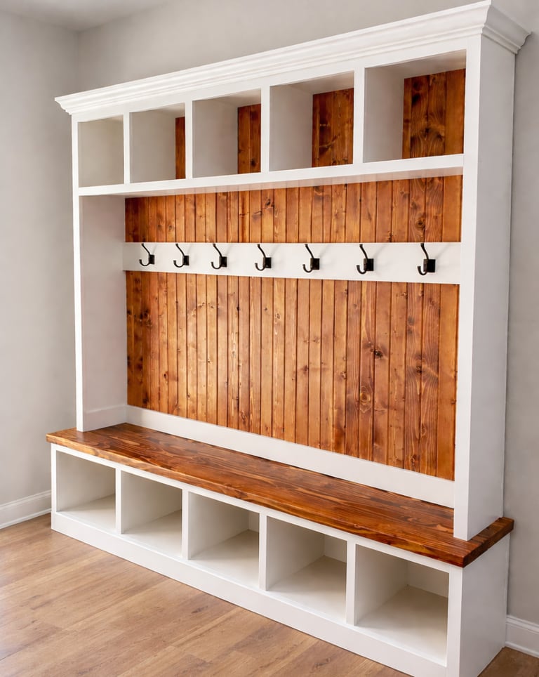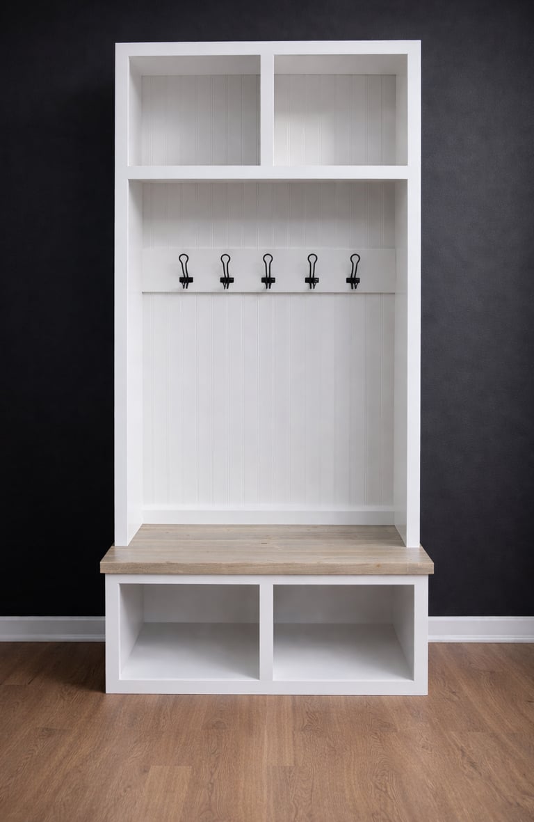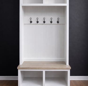 The Fort Worth Hall Tree is one of our most loved designs—and for good reason. Thoughtfully handcrafted, it features a painted bead board back, a richly stained solid wood bench top, and removable cubby shelves, making it incredibly versatile for year-round use. Keep boots organized in the winter, then easily adjust for shoes and flip-flops in the summer—no compromises, no clutter.