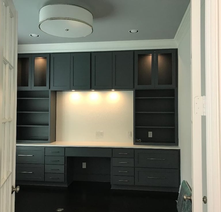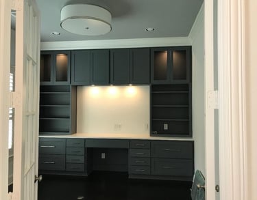 Do you need that custom work space. Get your custom office space with handcrafted bookcases, custom filing systems, and more.